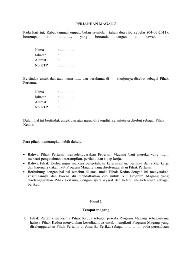 Selama masa magang pihak kedua wajib mengikuti ketentuan jam kerja dan ketentuan umum yang berlaku. Contoh surat pernyataan kesanggupan tidak menikah selama kontrak. Surat perjanjian kerja sama penting untuk dibuat agar menghindari saat bekerja sama baik itu berupa kepemilikan sebuah bisnis atau pembagian hasil tidak terjadi cekcok. Contoh surat » surat keterangan » contoh surat keterangan magang kerja dari perusahaan. 19th april 2021 11 min read.